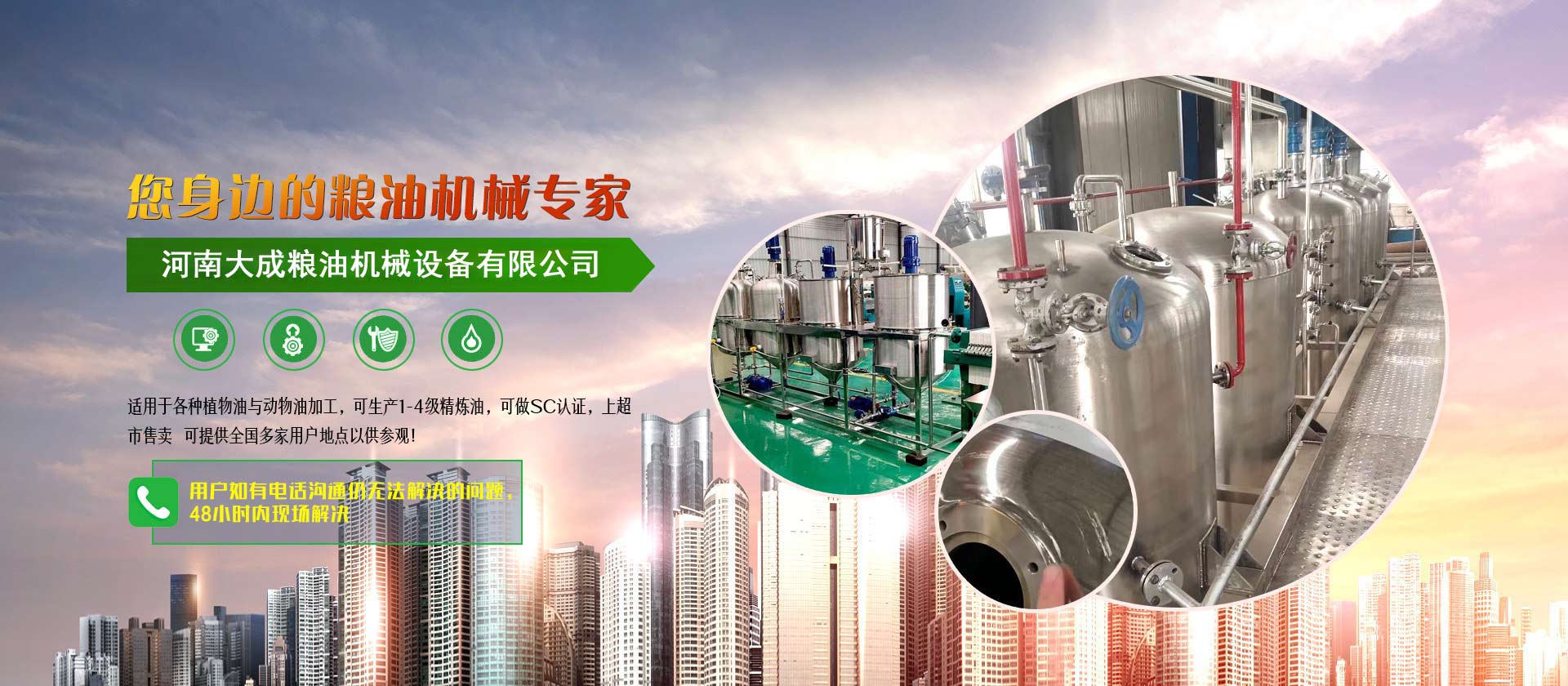食用油精煉設(shè)備_油脂浸出設(shè)備_榨油機(jī)全套設(shè)備--河南大成機(jī)械設(shè)備有限公司是專(zhuān)業(yè)從事油脂精煉設(shè)備、油脂浸出設(shè)備、榨油設(shè)備等各類(lèi)型油脂加工設(shè)備研制與生產(chǎn)的高新技術(shù)企業(yè)。
