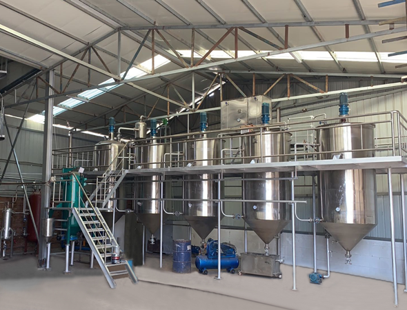 本車間采用間歇式精煉的生產(chǎn)工藝,根據(jù)毛油的種類和品質(zhì)不同,可調(diào)整工藝參數(shù),選擇不同的精煉方式,可以生產(chǎn)一、二、三級食用油;我們提供的工藝設(shè)備有如下優(yōu)點: